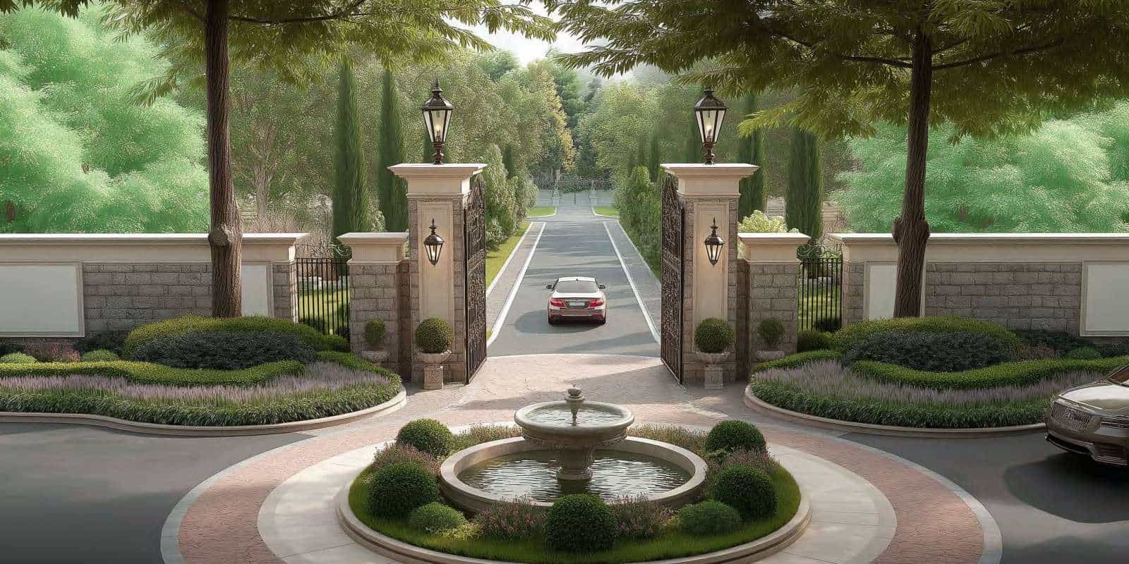 Expansive private grounds with lush landscaping